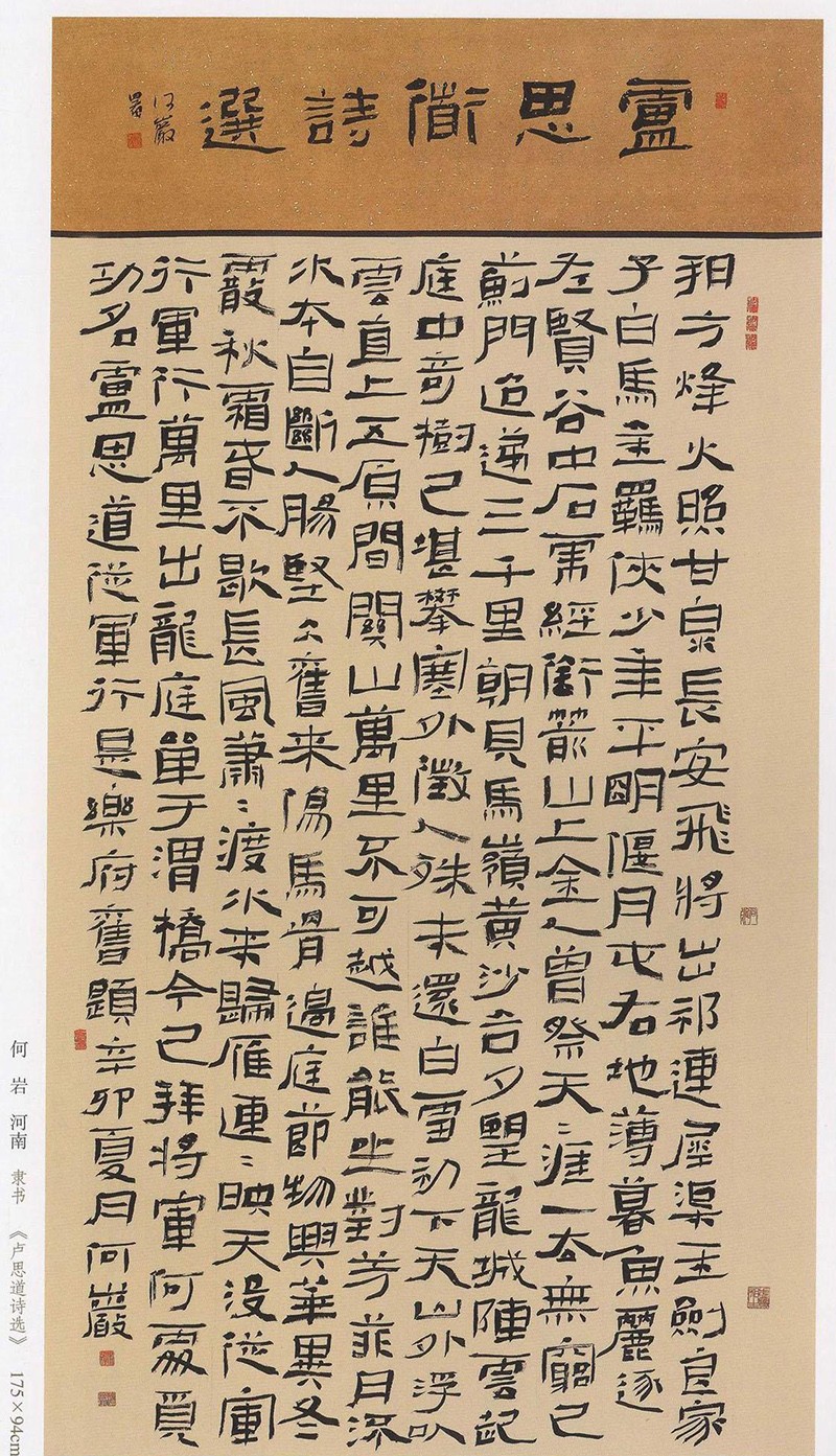 何岩女士毕业于河南大学艺术学院书法篆刻专业,获硕士学位,师从赵振乾、吴行、张文平先生。现任教于周口师范学院,是中国书法家协会会员,河南省书法家协会教育委员会委员,周口市书法家协会副主席,周口市政协委员,江西省书法家协会培训中心导师。